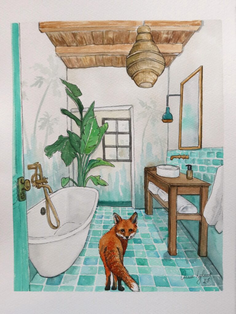 At Home – Fox in bathroom
